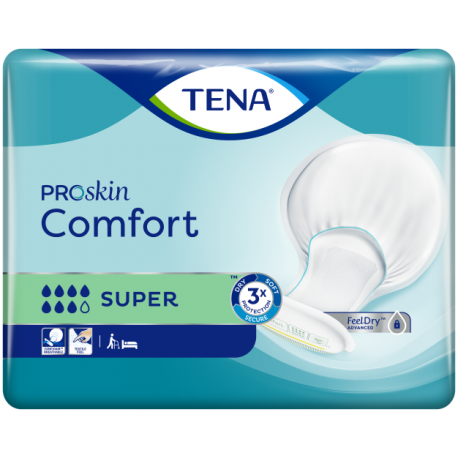 Shaped pad with ultra absorbent FeelDry core to lock away large volumes of liquid for a comfortable, dry feeling. All round leakage barrier creates a unique bowl shape for added security while a breathable textile back sheet maintains optimal skin freshness. With odour control technology and wetness indicator. Designed for use with fixation pants for a close fit.