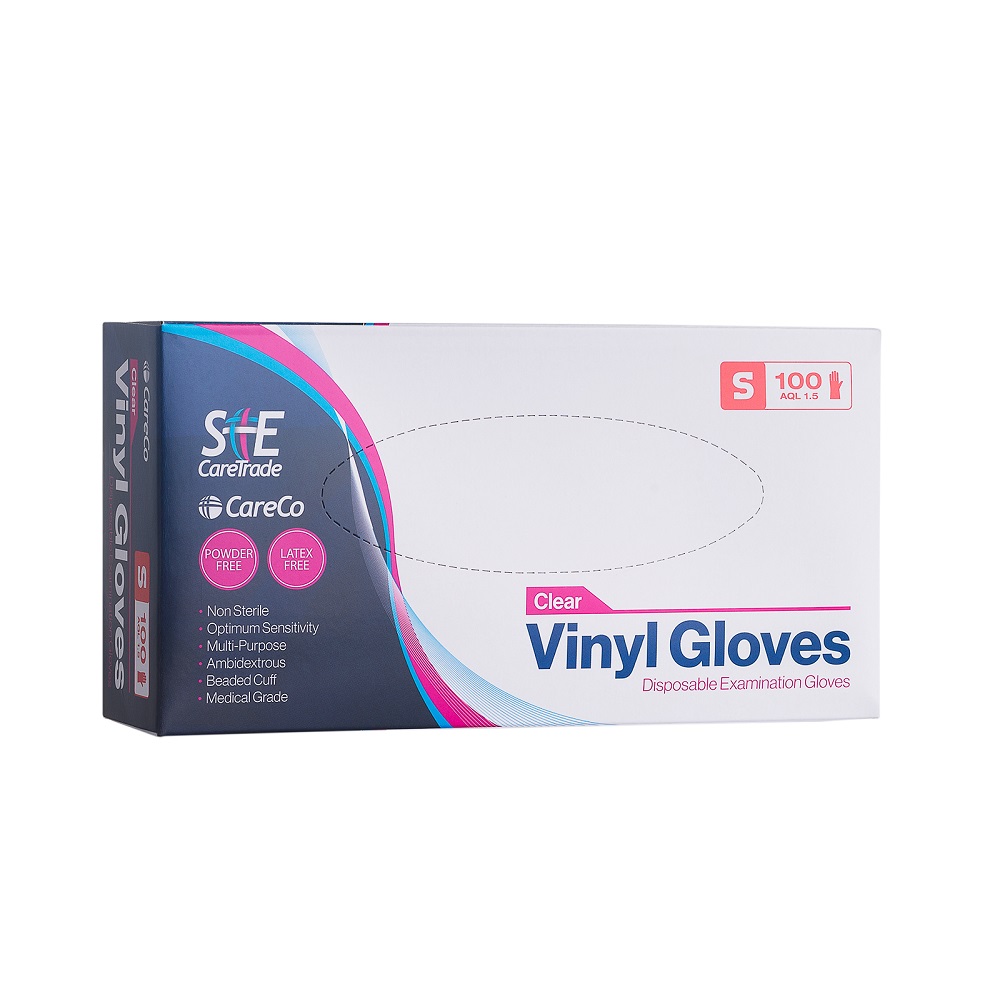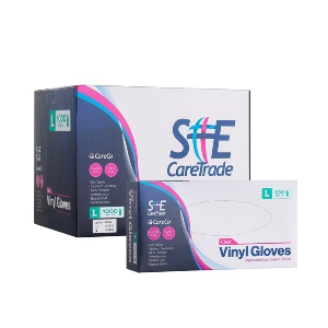 Single use powder free translucent vinyl gloves suitable for low risk procedures. Available in small, medium, large and extra large.