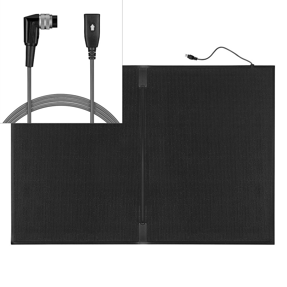 Heavy duty, extra large black plastic floor mat (900x600mm) with a non-slip surface and soft rubber backing, designed to be placed at the bedside, in a doorway, nears stairs or on any thoroughfare and connected directly into a nurse call system. The pad will trigger an alarm by detecting changes in pressure when stepped on, indicating that the user is attempting to leave their bed, room or corridor. Fitted with a 3-metre or 8-metre breakaway cable to protect the monitor if the pad is inadvertently pulled away, and a coiled cable available with a variety of jacks to suit all popular nurse call systems. Monitor features three alarm tones, flashing LEDs and adjustable volume, plus low battery indicator, strain relief point and caregiver key facility to disable the alarm when administering care. Supplied in a soft, protective case with hanging strap, batteries and wall fixings all supplied.