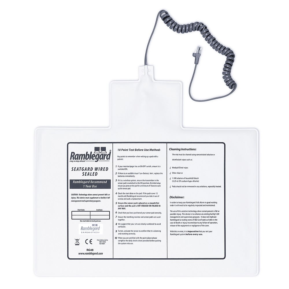 Achieve 24-hour monitoring and fall prevention with the combination of a Ramblegard bed mat (760x510mm) and seat pad (380x250mm) which are both connected into the Ramblegard intuitive monitor and plugged directly into a nurse call system. The pad will trigger an alarm by detecting changes in pressure that indicate the user is attempting to sit/stand up or get out of bed. Supplied with the appropriate breakaway connector leads and coiled nurse call system leads, available with a variety of jacks to suit all popular nurse call systems. Monitor features three alarm tones, flashing LEDs and adjustable volume, plus low battery indicator, strain relief point and caregiver key facility to disable the alarm when administering care. Supplied in a soft, protective case with hanging strap, batteries and wall fixings all supplied.