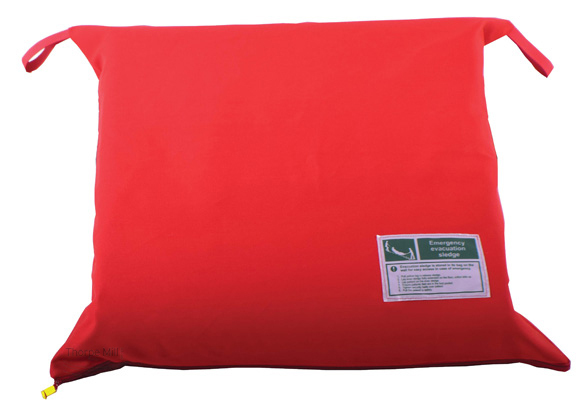 This device consists of dual inner foam, lower layer firm to ride over any surfaces, carpets, concrete or any bumps like stairs, and an upper layer for patient comfort. There are safety belts and a foot pocket to hold the patient in place, pulling loops at each end and a tough slippery coated bottom side. The loop at the head end is to hold back when descending stairways. One or two people required. The whole item is stored in a pouch and can hang on the wall. EVSG