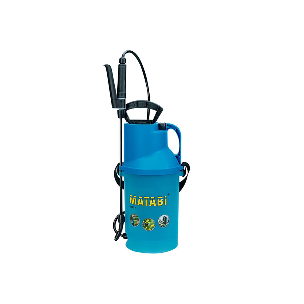 A compression sprayer with a 5- litre working capacity, with a translucent tank to see the liquid level, fibreglass lance, chamber shut-off valve in viton, ergonomic handle, filter with viton seals and stainless steel spring. Extras: Warranty: 3 years. Working capacity: 5 l. Total capacity litres: 7 l. Lance length: 0,57 Hose length: 1,3 Carrying straps: Yes Safety valve: Yes