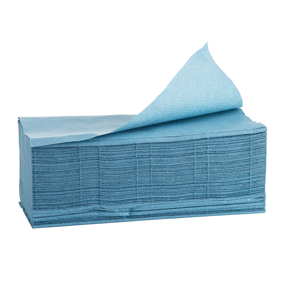 Economy blue single-ply hand towels with interlocking fold, ideal for pop-up dispensers. 210mm x 250mm